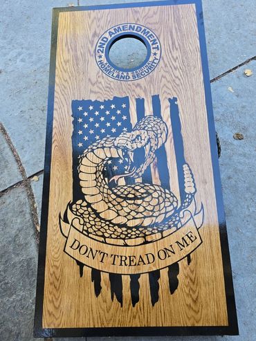 I specialize in hand painted cornhole boards. Many of my designs are designed around the 2nd Amendment.